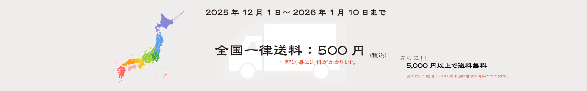 - 期間限定送料ご優待キャンペーンについてお知らせ