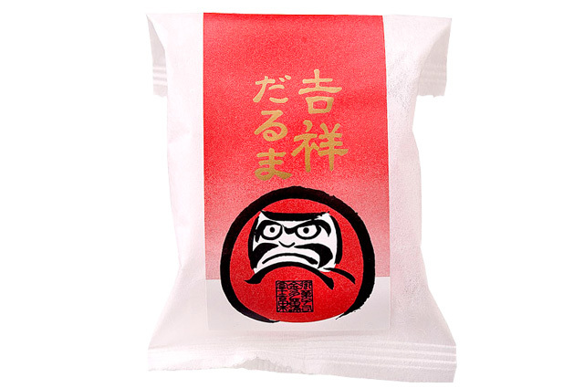 かわいらしい縁起物、だるまさんの形をした皮に餡を詰めてお召し上がりいただく最中です。